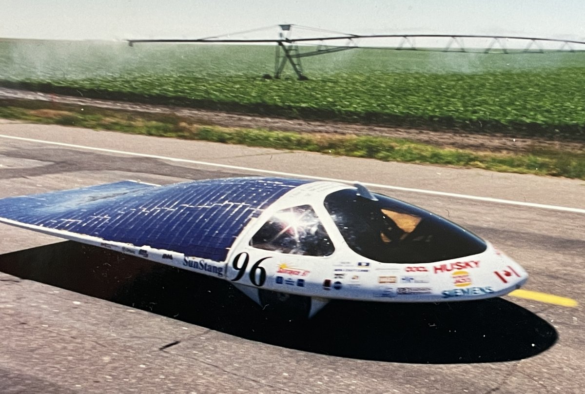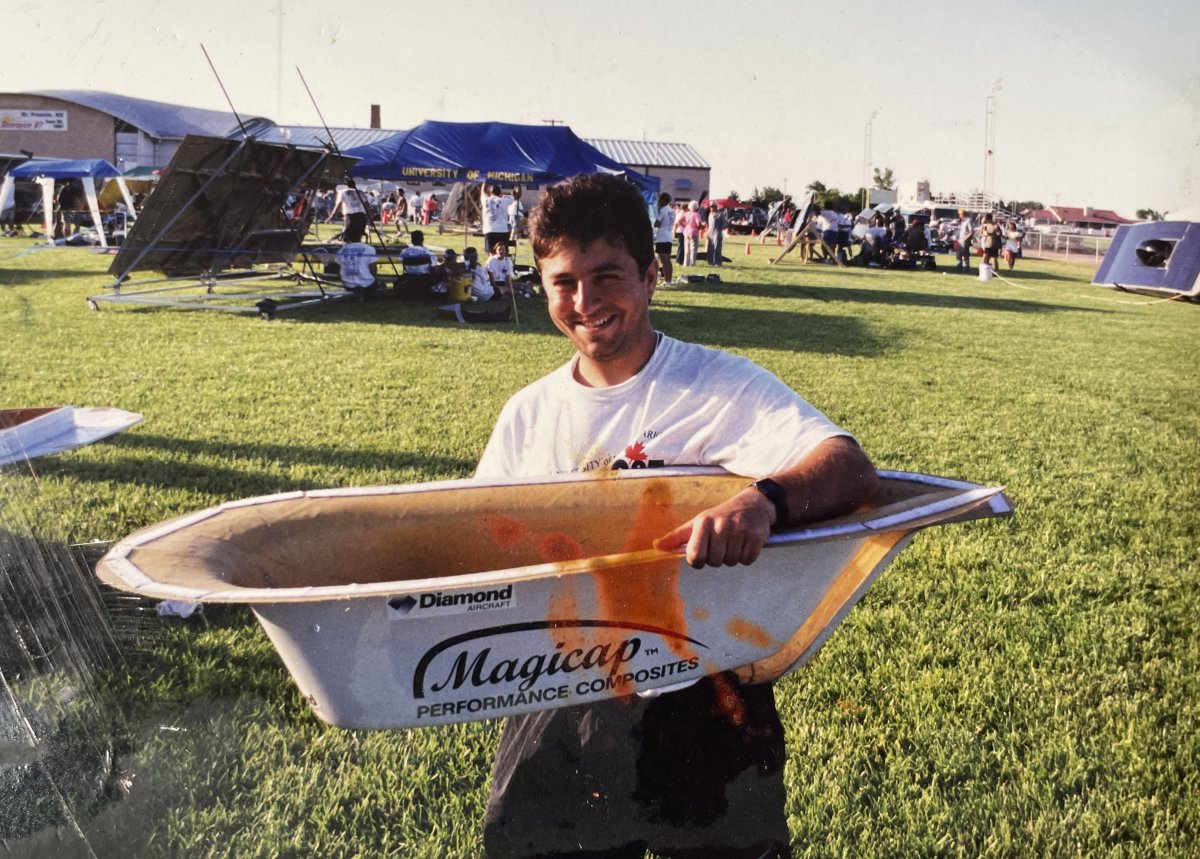 Spats are airfoils that enclose a wheel for better aerodynamic performance. This spat was made by James in the 1990's to enclose the rear wheel of the University of Western Ontario's Solar Car Challenge. The pattern and mold was made in a lab at University of Western Ontario in 24 hours and vacuum bagged by Diamond Aircraft the following day. This was a last minute job that was fully complete in 3 days. The Spat weighed 2.2 lbs.